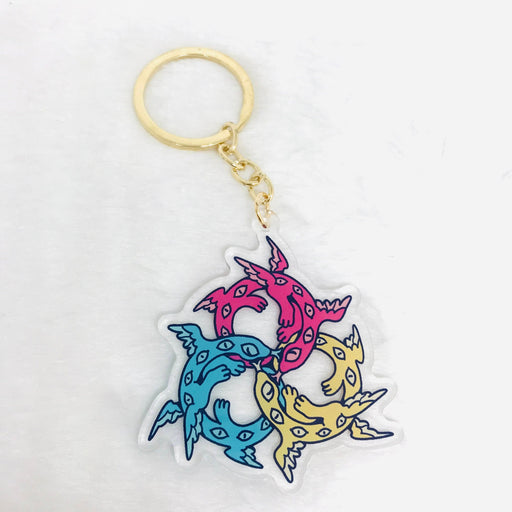Ultra Infinite Shop$9.00| /A trio of angelic serpents, for Pansexual pride. This acrylic keychain is 2.5 inches (6.3 cm) long, double-sided with the same print on both sides...