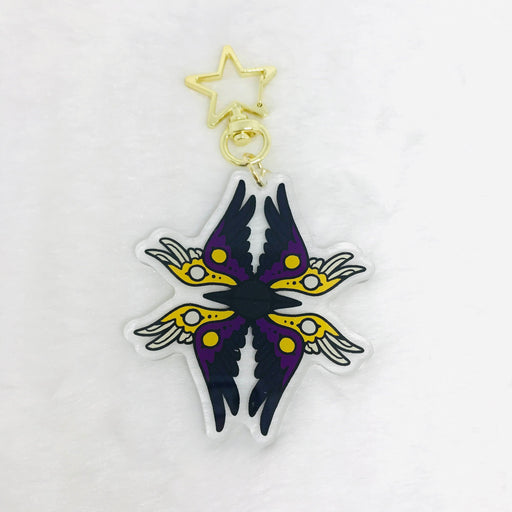 Ultra Infinite Shop$9.00| /This acrylic keychain is 2.5 inches (6.3 cm) on the longest side, double-sided with the same print on both sides; it has a purple star clasp.