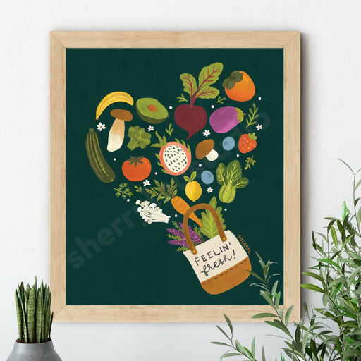 Sherry Lou Studio$20.00| /8x10 fruit and veggies print featuring dragon fruit, eggplant, enoki mushroom, lemons, bok choy, beets, persimmons, avocado and more!