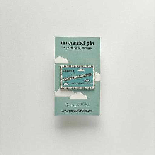 Yours Truly, Mary Anne$12.00| /Pin down this souvenir enamel pin from your travels through your inner world and encounters with a procrastinator (and maybe it's you). Bring this ...