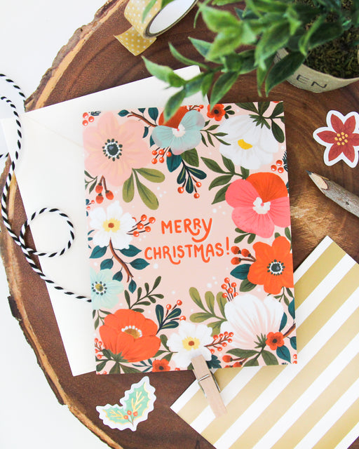 Sherry Lou Studio$5.00| /Send warm holiday wishes with a floral Christmas card! Blank inside and comes with an envelope. Size: 4.25”x5.5”