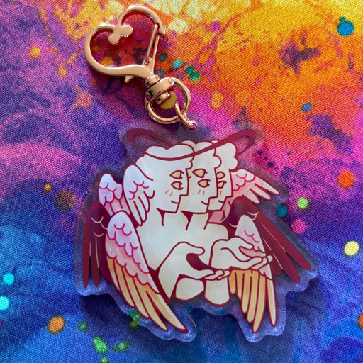Ultra Infinite Shop$9.00| /This acrylic keychain is 2.5 inches (6.3 cm) on the longest side, double-sided with the same print on both sides; it has a gold heart clasp.