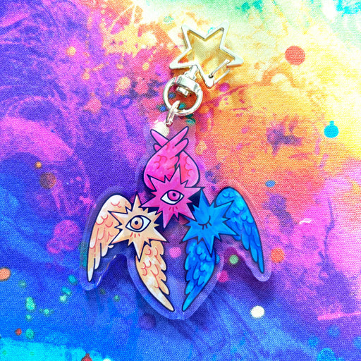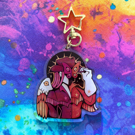 Ultra Infinite Shop$9.00| /This acrylic keychain is 2.5 inches (6.3 cm) on the longest side, double-sided with the same print on both sides; it has a rainbow star clasp.