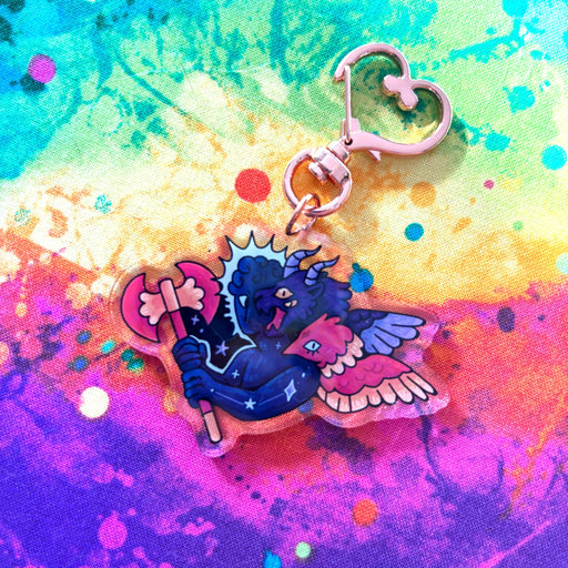 Ultra Infinite Shop$9.00| /This acrylic keychain is 2.5 inches (6.3 cm) on the longest side, double-sided with the same print on both sides; it has a rainbow bat clasp.
