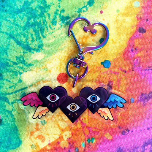 Ultra Infinite Shop$9.00| /This acrylic keychain is 2.5 inches (6.3 cm) on the longest side, double-sided with the same print on both sides; it has a rainbow heart clasp.