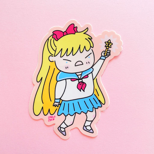 Shark City Slicker$3.00| /Her codename is Sailor V but you can call her Minako. It's show time! -Diecut-Measures approximately 2.6" wide x 3.2" tall-Printed on white gloss v...