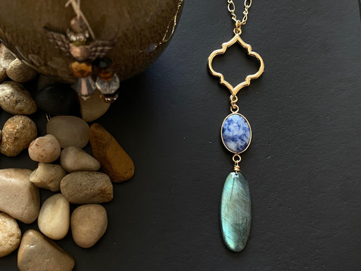 Labradorite pendant, Chrysocolla necklace, labradorite pendant, long necklace , length 18 inch