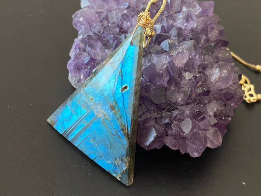 Labradorite pendant, natural gemstone, womens necklace, blue flashy necklace, large triangle pendant