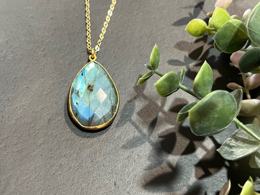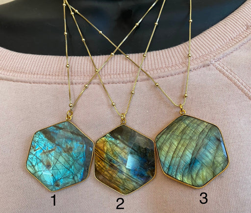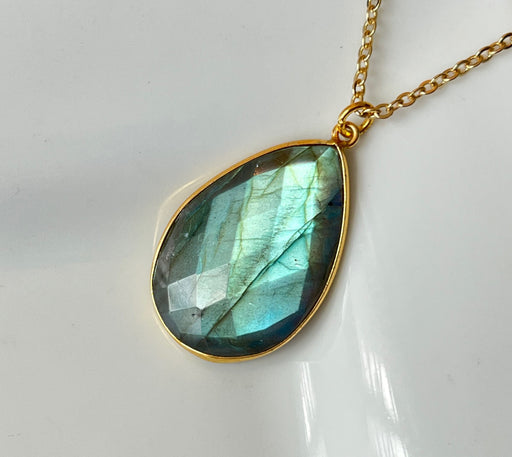 BeadsNShine$75.00| /The stone is faceted labradorite. The stone is set in a bezel. The chain is a gold plated link chain.The length of the chain is 18 inch. It’s a 14k...