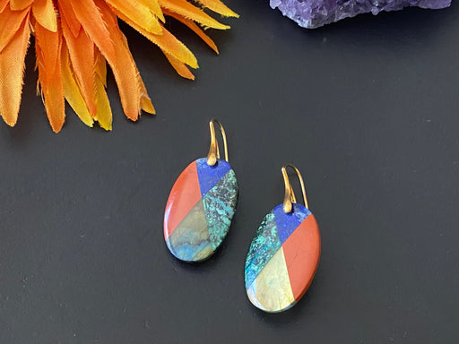 Labradorite, chrysocolla, red jasper, Lapis lazuli earrings, intarsia earrings, statement earrings, natural stone earrings