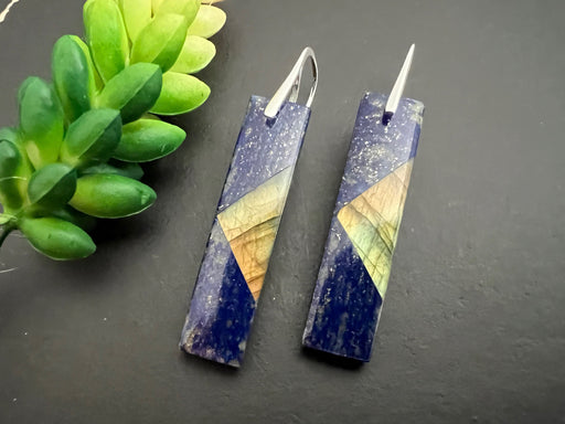 Labradorite earrings, intarsia earrings, statement earrings , lapis lazuli earrings , unique dangles, natural stone earrings, lightweight