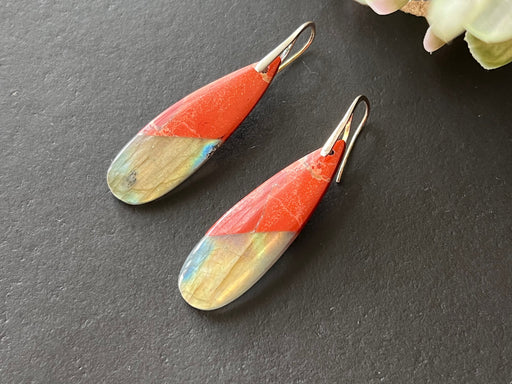 Labradorite earrings, intarsia earrings, statement earrings , red jasper earrings , unique dangles, natural stone earrings, lightweight