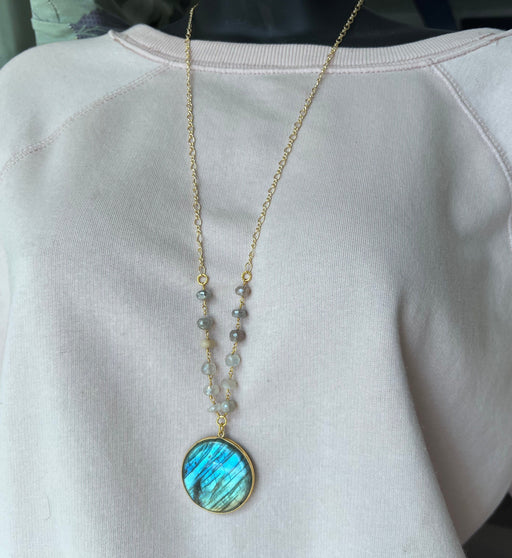 BeadsNShine$49.00| /This is a beautiful and elegant Labradorite pendant in a pearl linked in a gold metal chain. The length of the chain is 22inch It’s a easy slip on...