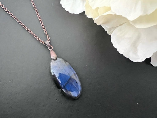 Labradorite pendant, Healing stone necklace, tropical necklace , long copper chain, length 28inch