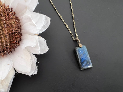 Labradorite pendant, natural gemstone, womens necklace, blue flashy necklace, rectangular pendant