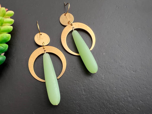 BeadsNShine$22.00| /This earring is about 3 inches long. Inspired by nature the bead is made of sea glass. Brass components are added here to give the boho glam touch....