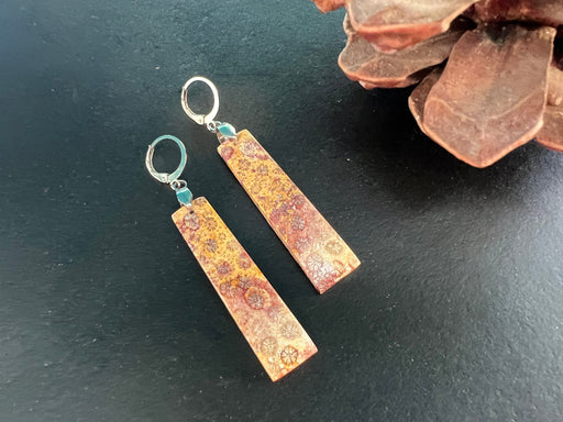 Long earrings, Gypsy earrings , fossil coral stone earrings , natural boho chic earrings, simple and elegant