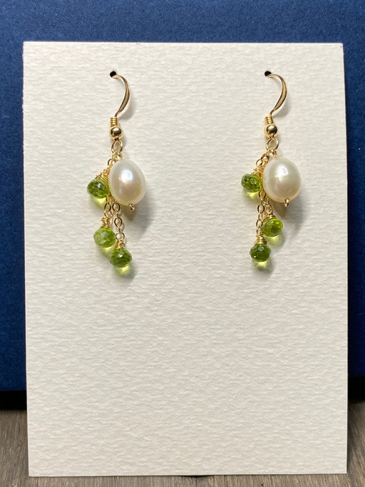 BVanSoi$50.00| /Made with 14kt. goldfilled, natural peridot and freshwater pearl Color: Green and white