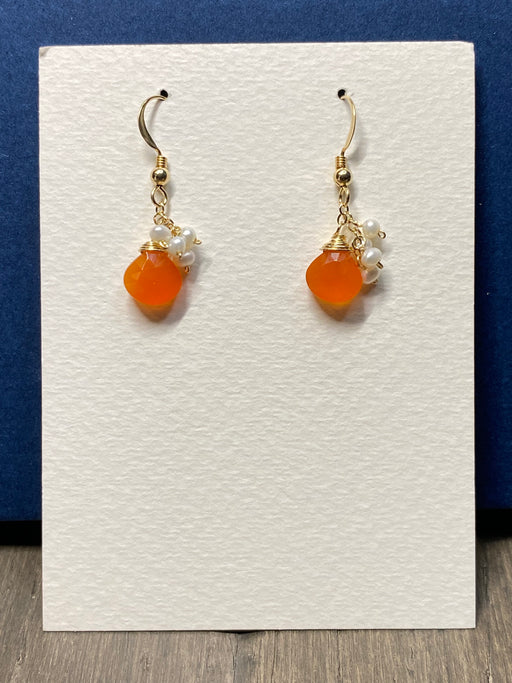 BVanSoi$50.00| /Made with 14kt. goldfilled, natural carnelian and freshwater pearl Color: Orange and white
