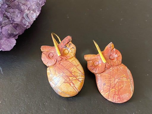 Picasso jasper earrings, Jasper earrings,natural stone Earrings, statement earring, carved owl earrings ,925 sterling silver French ear hook