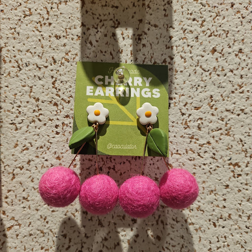 Faith Cao$35.00| /Pink cherry earrings are made out of polymer clay and felt. Earring backings are made with stainless steel.