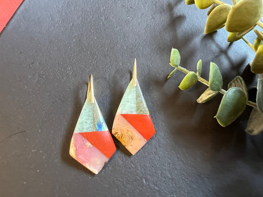 Pink opal , amazonite, labradorite ,red jasper earrings, intarsia earrings, statement earrings ,natural stone earrings