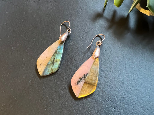 Pink opal, labradorite ,intarsia earrings, statement earrings ,natural stone earrings