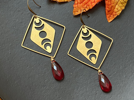 Quartz earrings - brass geometric earrings - Moon phase earrings - Gifts for women - gemstone dangles