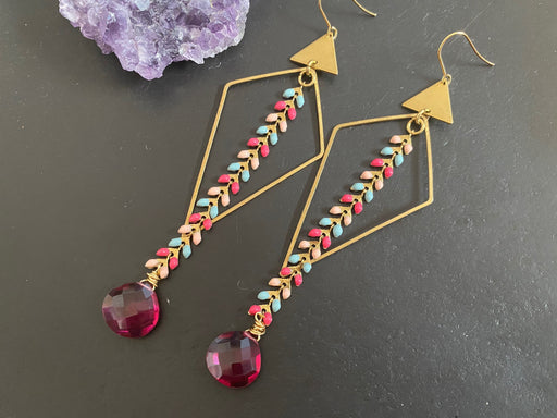 Quartz drop Earrings, Boho Dangle Earrings, Vintage Jewelry , Bohemian Hippie Earrings, brass earrings,