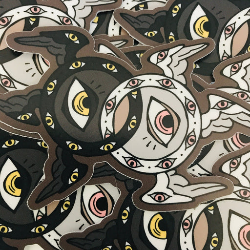 Ultra Infinite Shop$2.50| /A many-faced cherub in purple, for Queer pride. This sticker is approximately 3 inches (7.6 cm) on the longest side, and printed on matte vinyl.