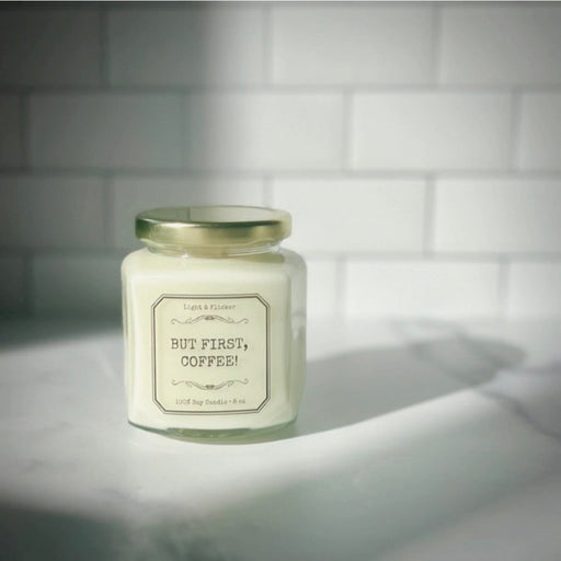 Light & Flicker$28.00| /Handcrafted, double wick, 100% soy wax candle blended with phthalate-free fragrance oils. Notes of Coffee, Milk, Vanilla, CaramelBurn time: 50 hours