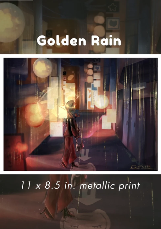 Notebean Stationery$8.00| /Horizontal print with girl standing in the rain with golden rain dropplets