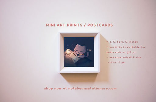 Notebean Stationery$8.00| /Mini Square Print with cat in dark blue background and small orange light