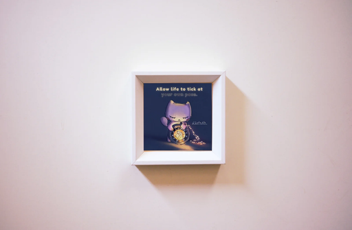 Notebean Stationery$8.00| /Mini square print with cat in dark blue background holding a clock