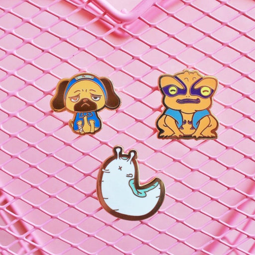 Basura Gang$22.00| /.75 inch gold hard enamel earrings with dangling piece - PP021, PP022