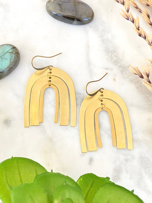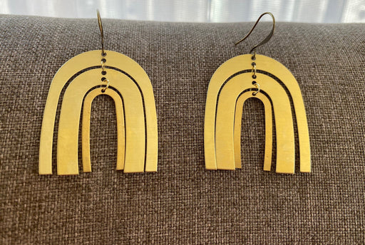 Statement earrings,brass geometric arch earrings, Modern brass earrings, raw brass earrings, gold dangles