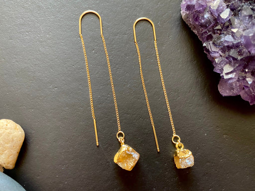 Gold threader earrings, raw natural citrine earrings,dainty and minimalist,sterling silver 925 , gifts for her, November birthstone