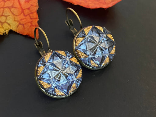 New Czech Glass Button Earrings, Boho Dangle Earrings, Vintage Jewelry, Czech Glass Earrings, Bohemian Hippie Earrings, unique gift for her