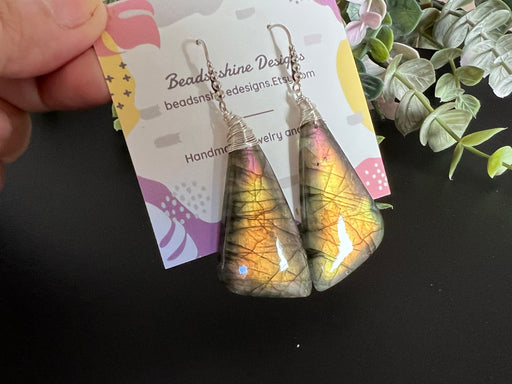 BeadsNShine$68.00| /The body here is a 925 sterling silver ear wire. 925 sterling silver wire is used to wrap the stone. These are most Mystical, whimsical labradorite...
