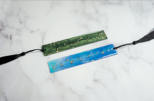 Red Swallow Creative$8.00| /Handmade Resin Bookmarks with Pressed-Flowers, Foil Flakes, and Black Tassel in various colors