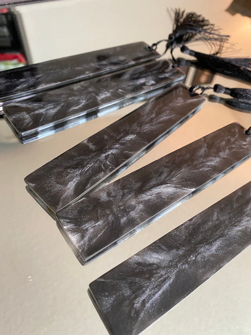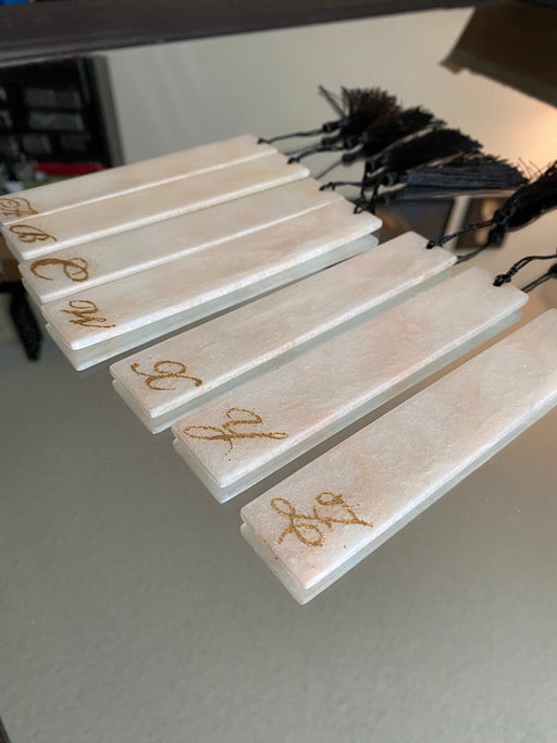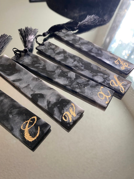 Monogram Marbled Resin Bookmarks with Tassels - White/Black Marbling