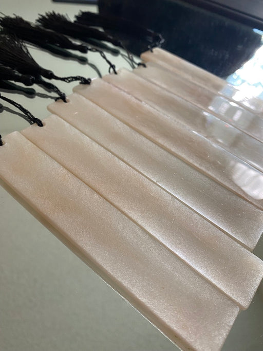 Monogram Marbled Resin Bookmarks with Tassels - White/Peach Marbling