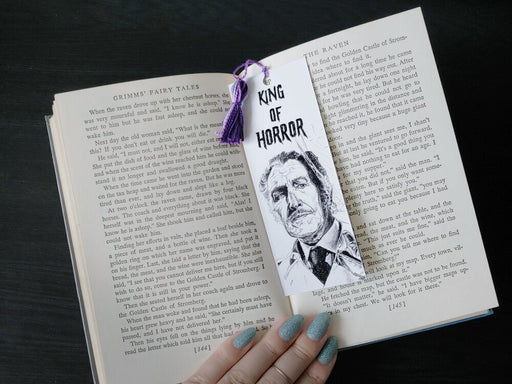 Motif's Art Studio$4.00| /Vincent Price decorates this spooky bookmark as his rightfully-owned title the "King of Horror." I drew this originally in pencil on textured paper...