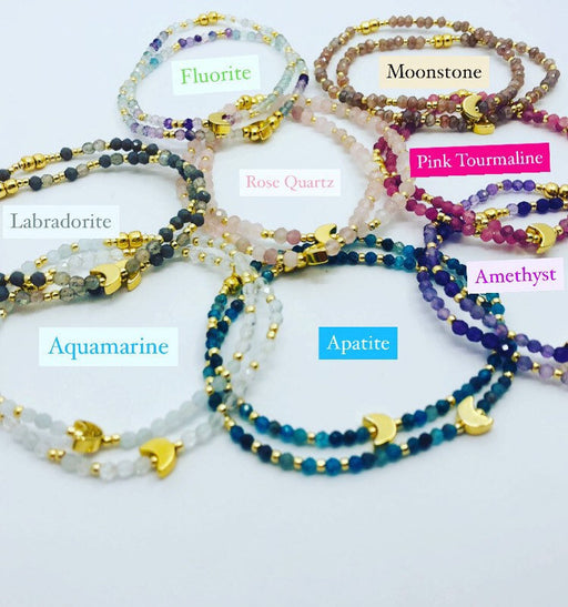 Bohemian Moon Art$30.00| /Beautiful and delicate gemstone bracelets Natural Faceted Madagascar Rose Quartz 💗4mm Moon Charm 🌛Gold 22k over bronze Miyuki Japanese beads 💗 Size...