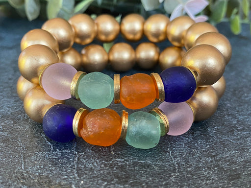 Beautiful African glass beads bracelet/ stack bracelet/ size 7"/ multi color bracelet/ gold wooden beads bracelet