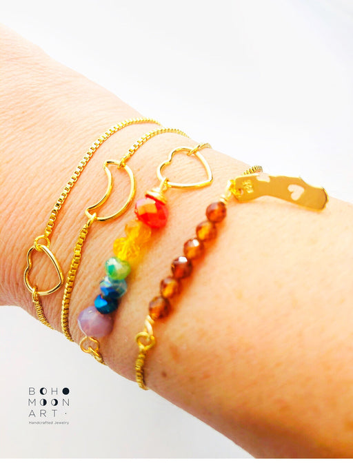 Bohemian Moon Art$24.00| /Beautiful Handmade Rainbow Heart Crystals Bracelets Gold Plated Heart Crystals Gold filled Bracelet Feel free to ask for more options av...