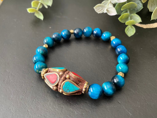 Statement bracelet, boho bracelet, blue tiger eye bracelet, Tibetan bead bracelet