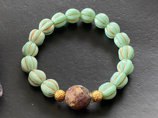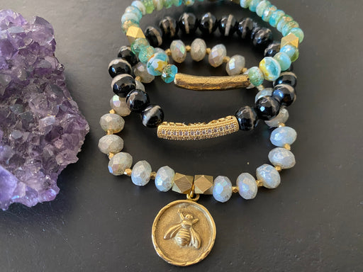 Statement bracelet, boho bracelet, beaded bracelet, czech glass beads bracelet, bee charm bracelet