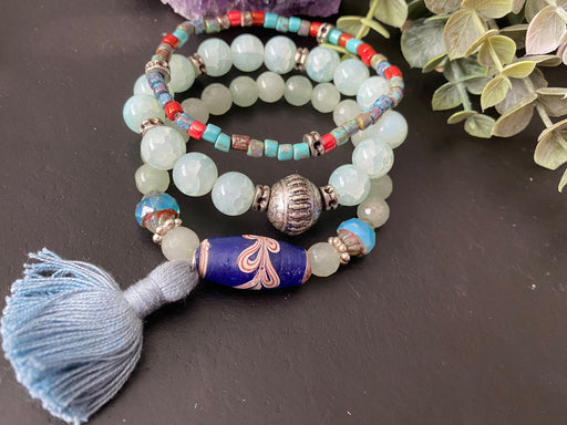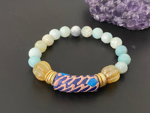 Statement bracelet, boho bracelet, Amazonite bracelet , beaded bracelet, african glass focal