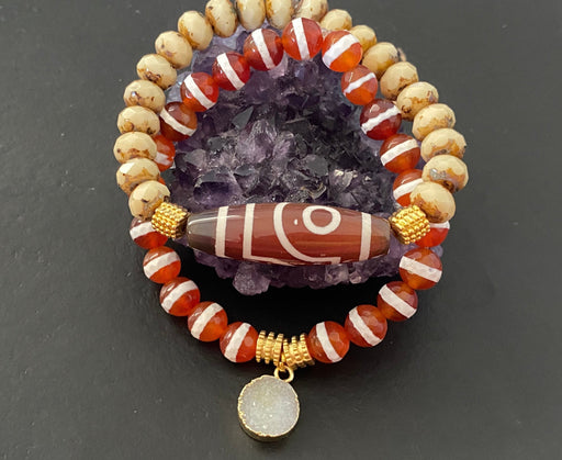 Statement bracelet, boho bracelet, beaded bracelet, czech glass beads bracelet, dzi agate bracelet